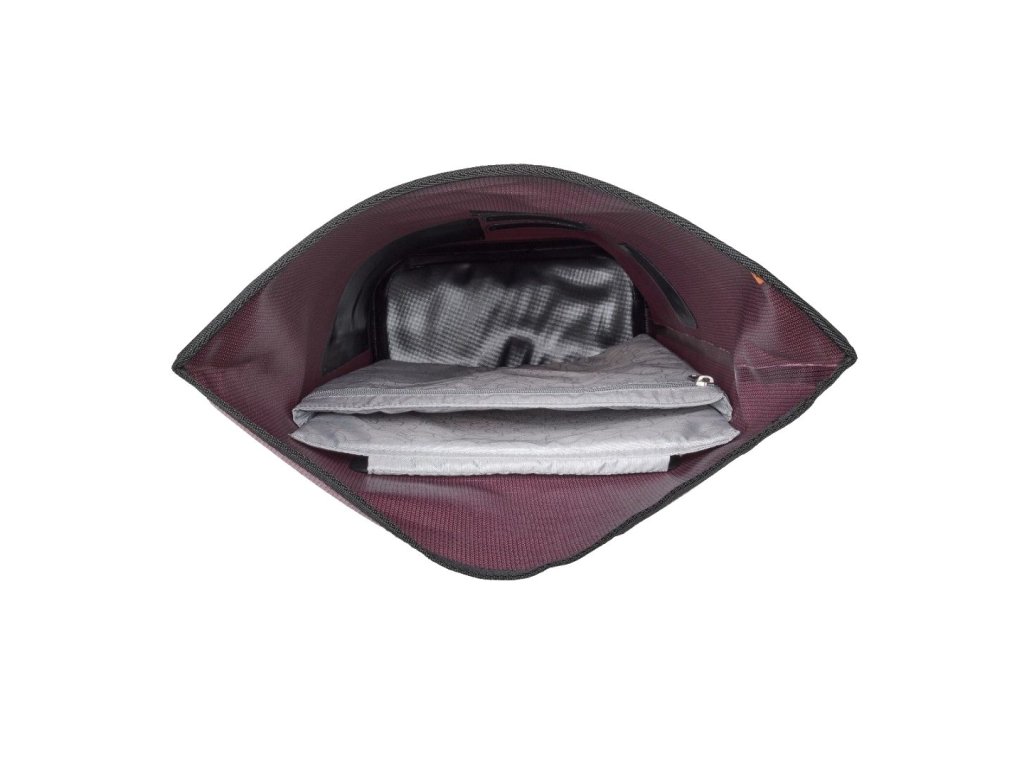 Vodotěsný a elegantní batoh ORTLIEB s moderním rolovacím zavíráním je vyrobený ze silného materiálu Cordura, který připomíná tkanou látku.