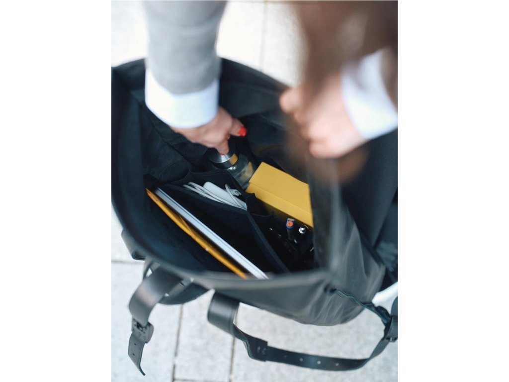 Model s rolovacím uzavíráním je vybaven hlavní vnitřní kapsou, menšími kapsami pro bezpečné uložení drobností a přední kapsou s voděodolným zipem.