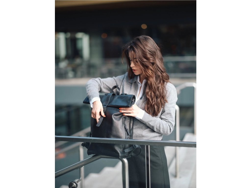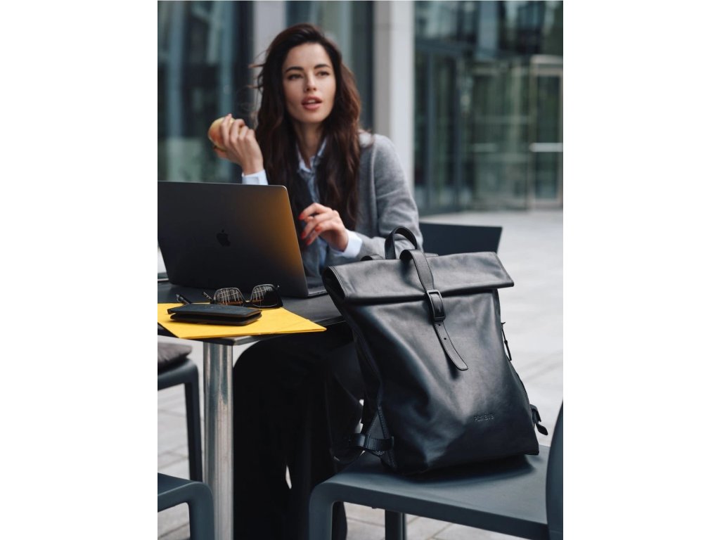 Nadčasový městský batoh s rolovací konstrukcí a magnetickým zapínáním pro každodenní nošení.