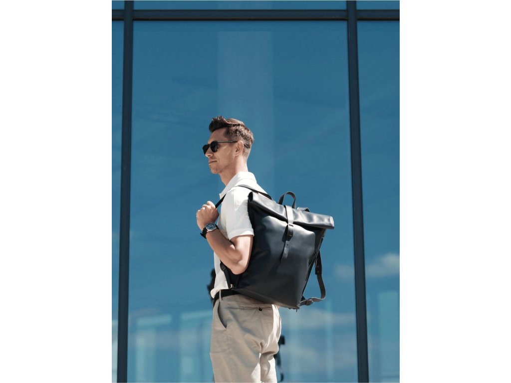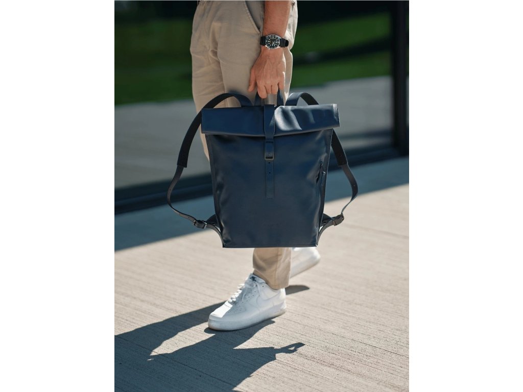 Nadčasový městský batoh s rolovací konstrukcí a magnetickým zapínáním pro každodenní nošení.