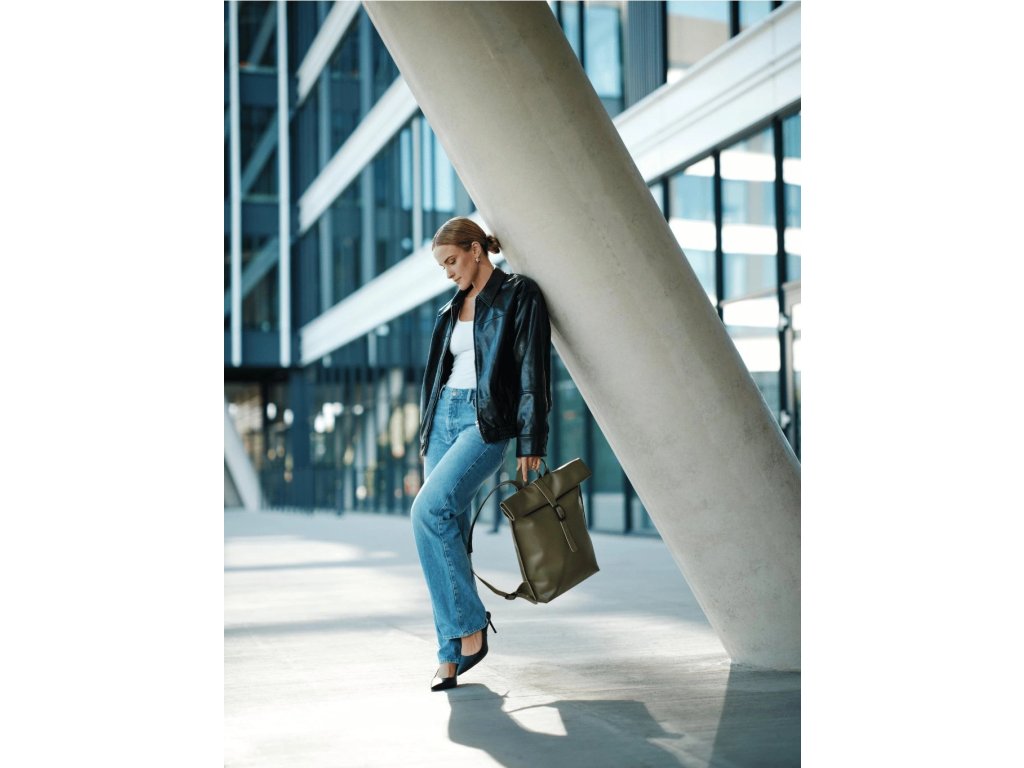 Kožený batoh DELFIN Fidlock - Olive Green