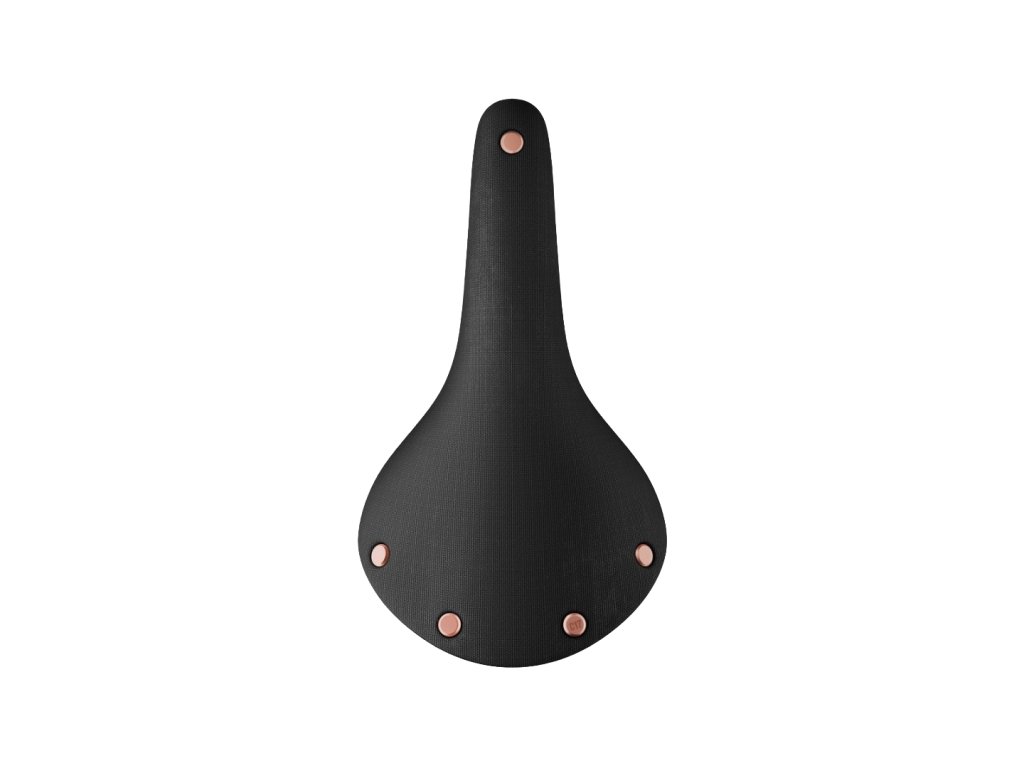 Sedlo BROOKS C 17 je vyrobeno z přírodního pružného kaučuku , na který je nalisována horní vrstva z organické bavlny .
