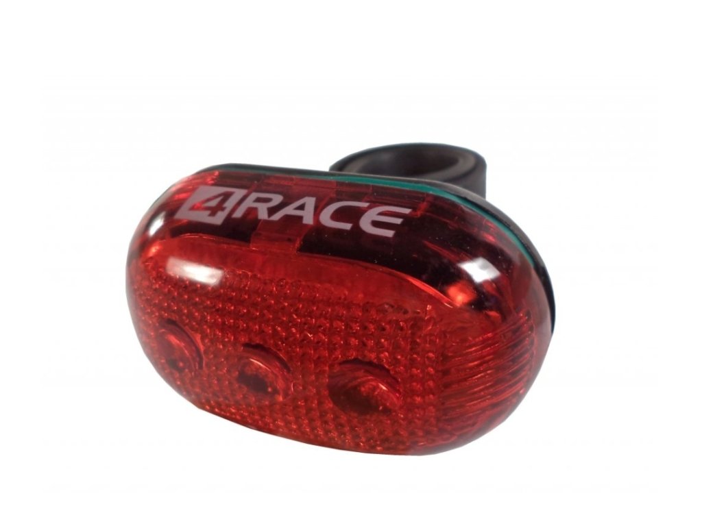 Zadní blikačka 4RACE 5LED se snadno připevní buď klipem na brašnu, batoh, oblečení nebo pomocí objímky na sedlovku jízdního kola.